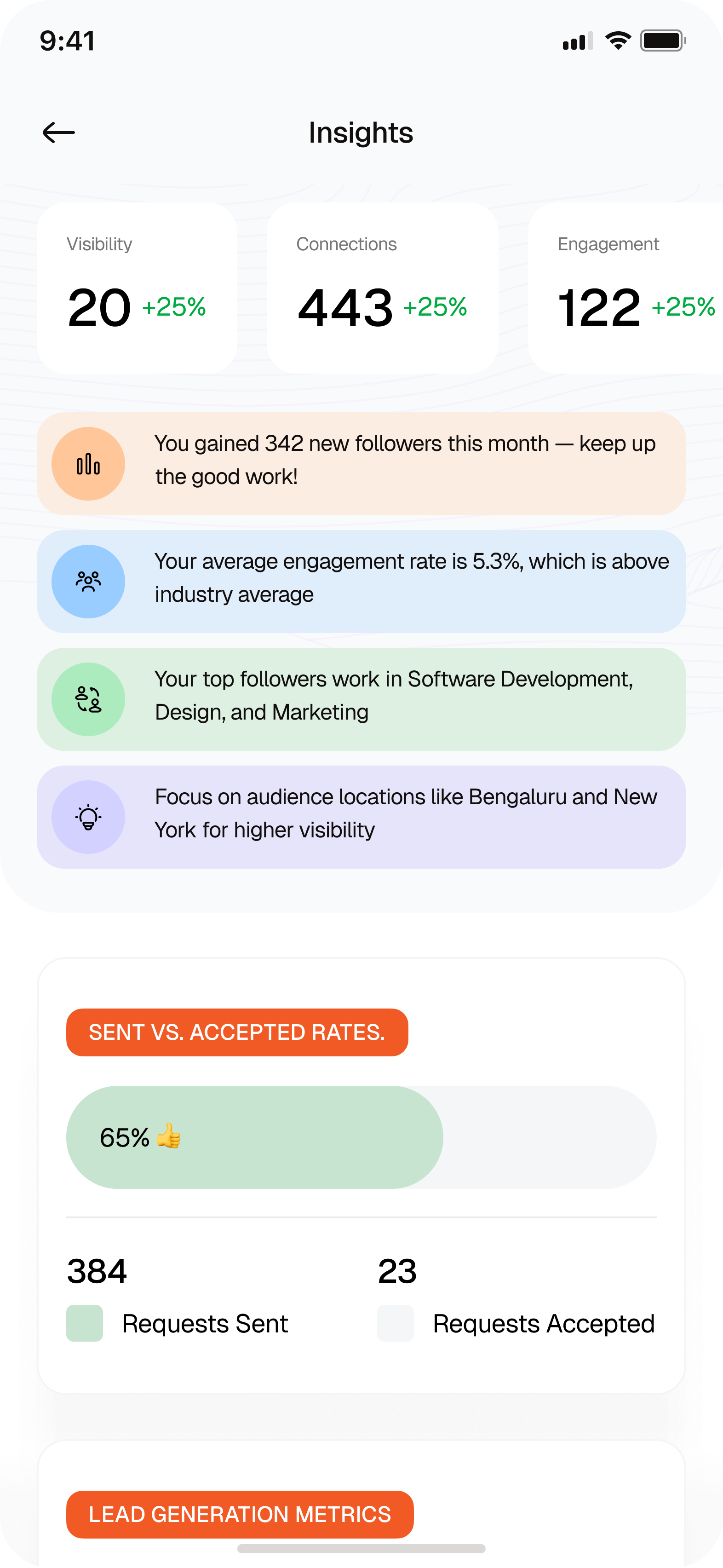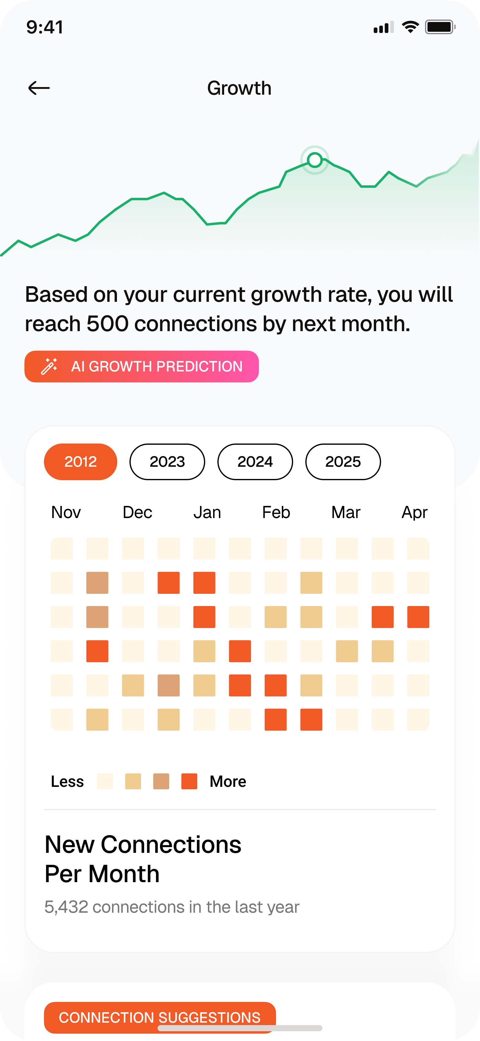 Schedule meetings, follow-up calls, and check-ins effortlessly with AI-driven smart reminders. Predictive insights help you stay ahead by recommending the best times to reconnect, ensuring you never miss a key networking opportunity.