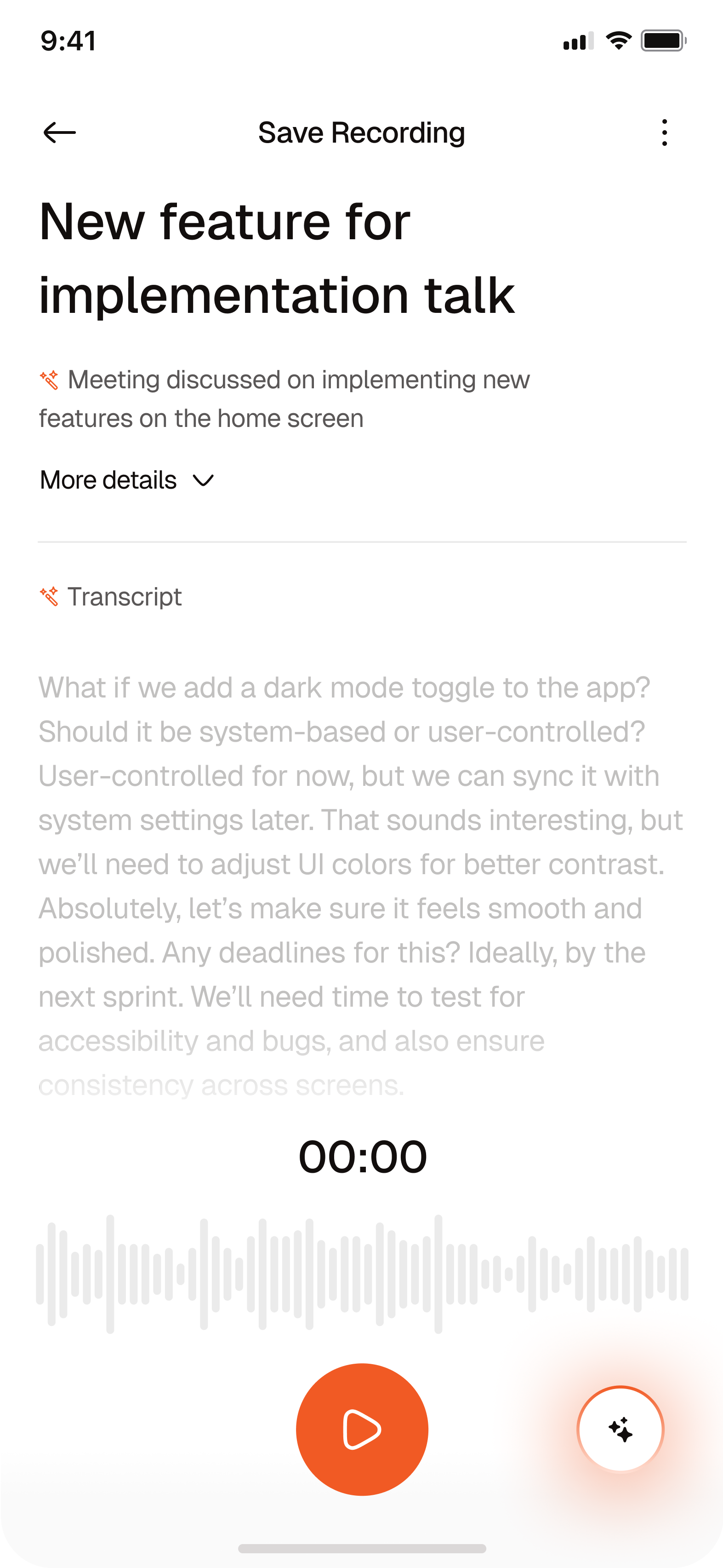 Capture & Organize Key Insights : Record, transcribe, and organize audio, video, or text notes, ensuring you always have important details accessible for future conversations and collaborations.